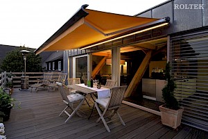 ROLTEK denkt an wohlige Wärme, wenn es kühler wird. Im Nu werden Sie die angenehme Wärme spüren und den Abend länger genießen. Ihr Zubehör ist gut geschützt in pulverbeschichteten Aluminiumgehäusen in ansprechendem Design, farblich passend zu Ihrer Markise.